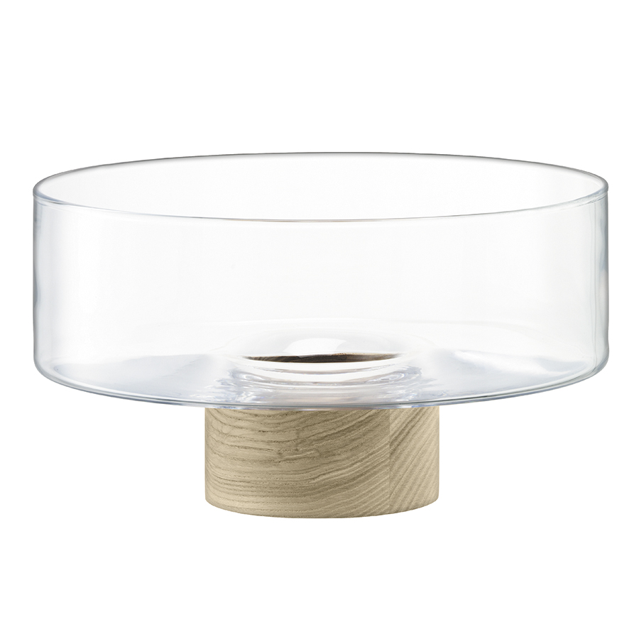 Блюдо из выдувного стекла на ножке из натурального ясеня отлично подойдет для фруктов или элементов декора. Сочетание стекла и дерева добавит скандинавскую нотку в любой интерьер.