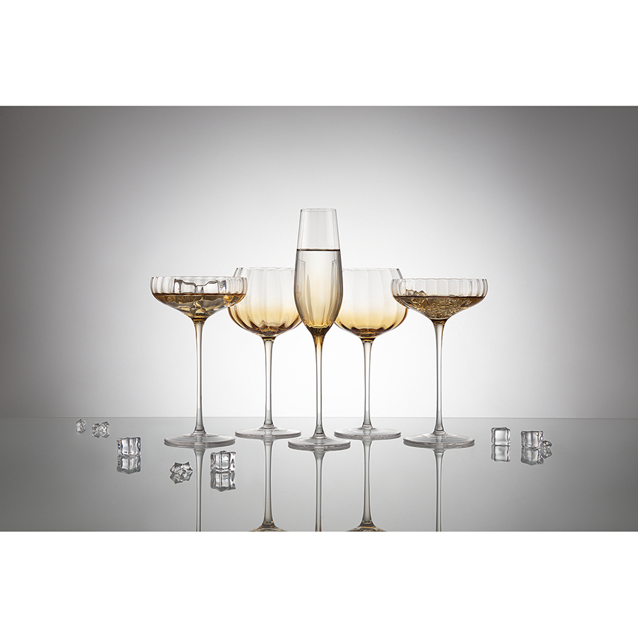 Линейка Gemma Amber привлекает лаконичным дизайном и стильным цветовым решением с теплыми янтарными акцентами. Вся посуда выполнена вручную из выдувного стекла. Такой способ производства позволяет играть с линиями и изгибами, создавая уникальные и неповторимые продукты. Изделия получаются более прочными, но при этом тоньше и прозрачнее аналогов из обычного стекла.