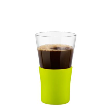 Стакан для кофе/чая 320 мл, с силиконовой подставкой, зеленый, стекло, серия YPSILON Brio, Bormioli Rocco